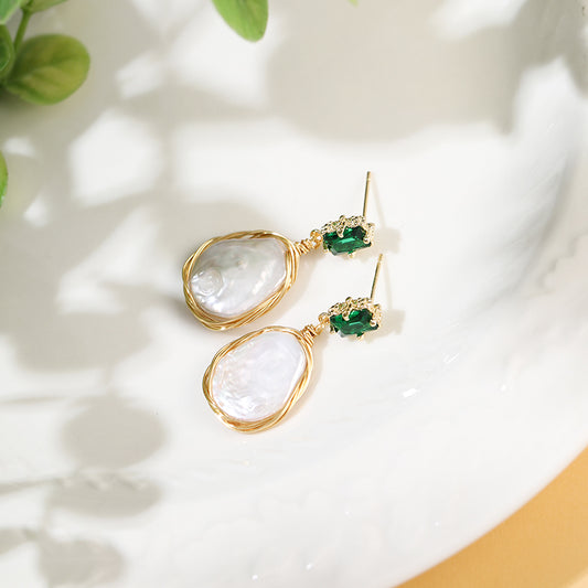 Baroque Pearl Zirconia Earrings